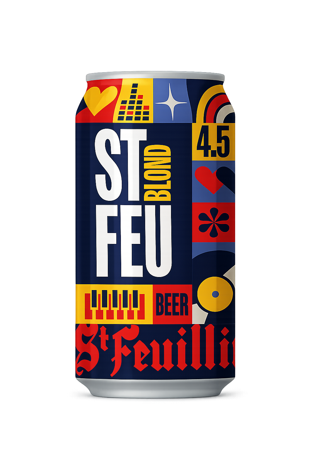 ST-FEU Blond is een licht en verfrissend blond bier van 4,5 %, verpakt in een doos met 4 x 4 blikjes van 33 cl (in totaal 16 blikjes), ideaal om te delen en van te genieten bij elke gelegenheid.